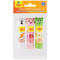 Набор клей-карандаш Мульти-Пульти "Зверята: Свинка, Лягушка, Белый медведь ", 09г, колпачок в форме животного, ПВП, пакет, европодвес