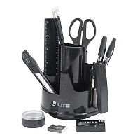 Настольный набор LITE БАШНЯ вращающийся 12 предметов, черный пластик