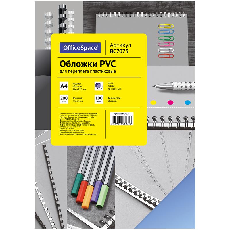 Обложка А4 OfficeSpace "PVC" 200мкм прозрачный синий пластик 100л.: BC7073 штр.: 4680211050733