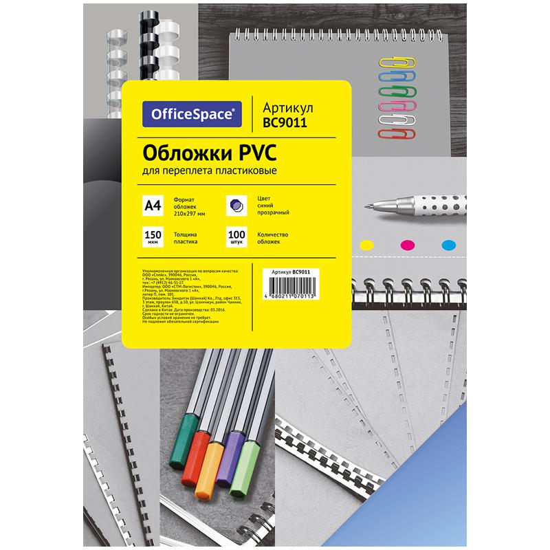 Обложка А4 OfficeSpace "PVC" 150мкм, прозрачный синий пластик, 100л.: BC9011 штр.: 4680211070113