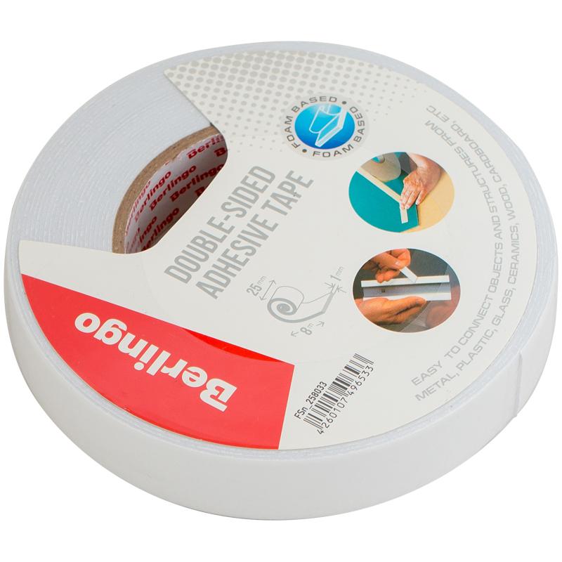 Клейкая лента двусторонняя Berlingo, 25мм*8м, на вспененной основе, 1мм. FSn_258033