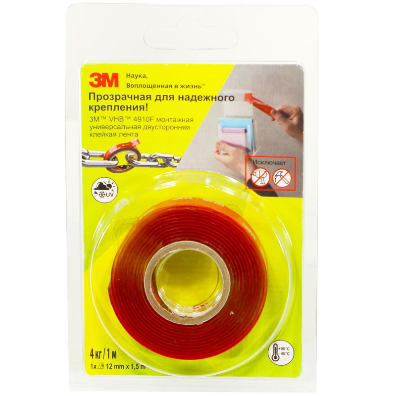Клейкая лента монтажная VHB 4910F прозрачная,универсальная (12MMX1500MM)