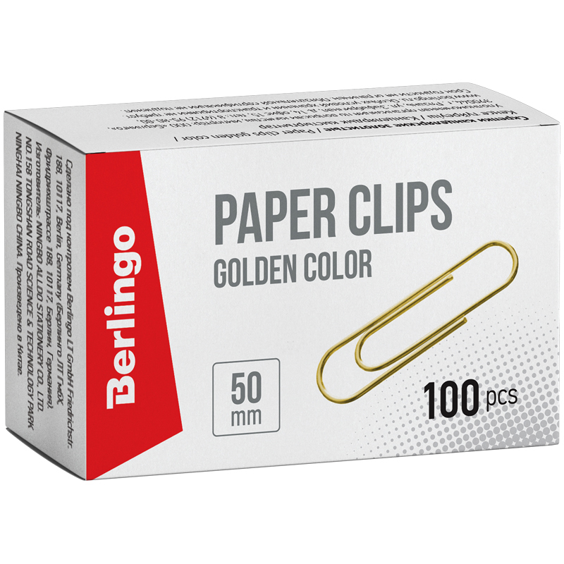 Скрепки 50мм, Berlingo, 100шт., золотистые, карт. упак.