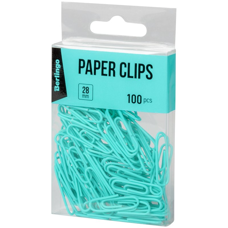 Скрепки 28мм, Berlingo, 100 шт, цветные, ПВХ упак., европодвес, голубые