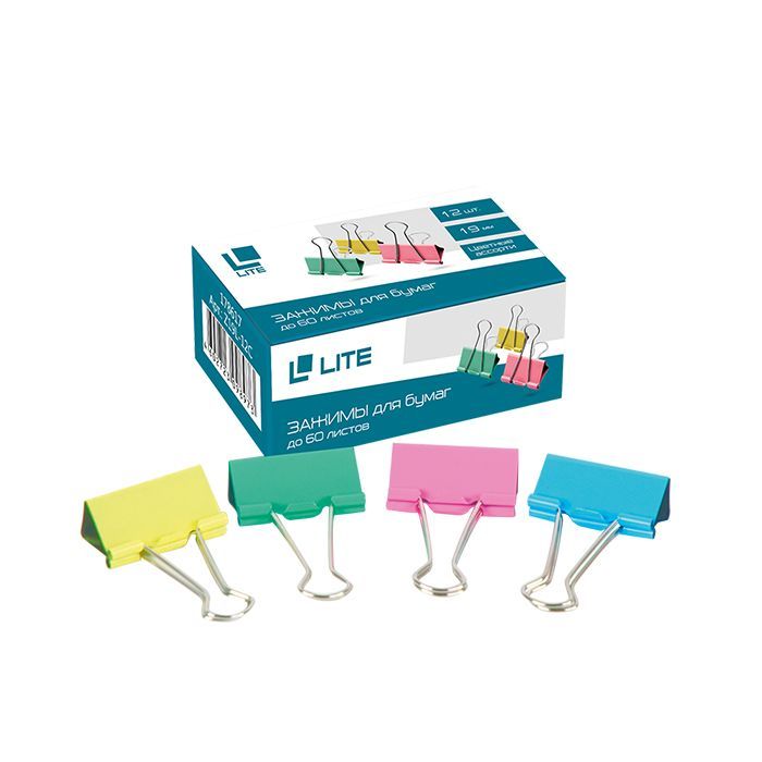 Зажим LITE 19 мм металл ассорти 12 шт/упак. Z19L-12С