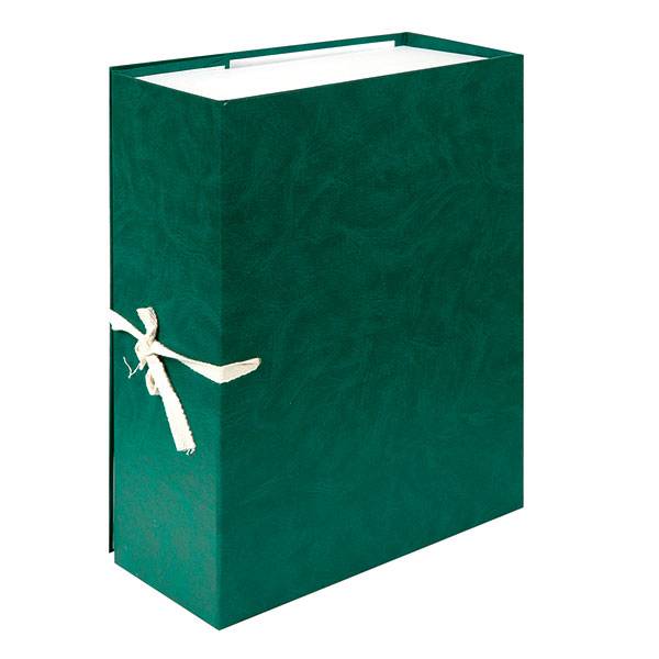Короб формата А4 из твердого прессованного картона с бумвиниловым покрытием. На корешке короба имеется цветной стикер для маркировки. Завязки фиксируют короб в закрытом состоянии.