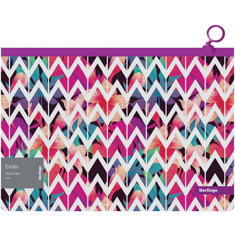 Папка-конверт на молнии Berlingo "Exotic" A4, 180мкм, с рисунком