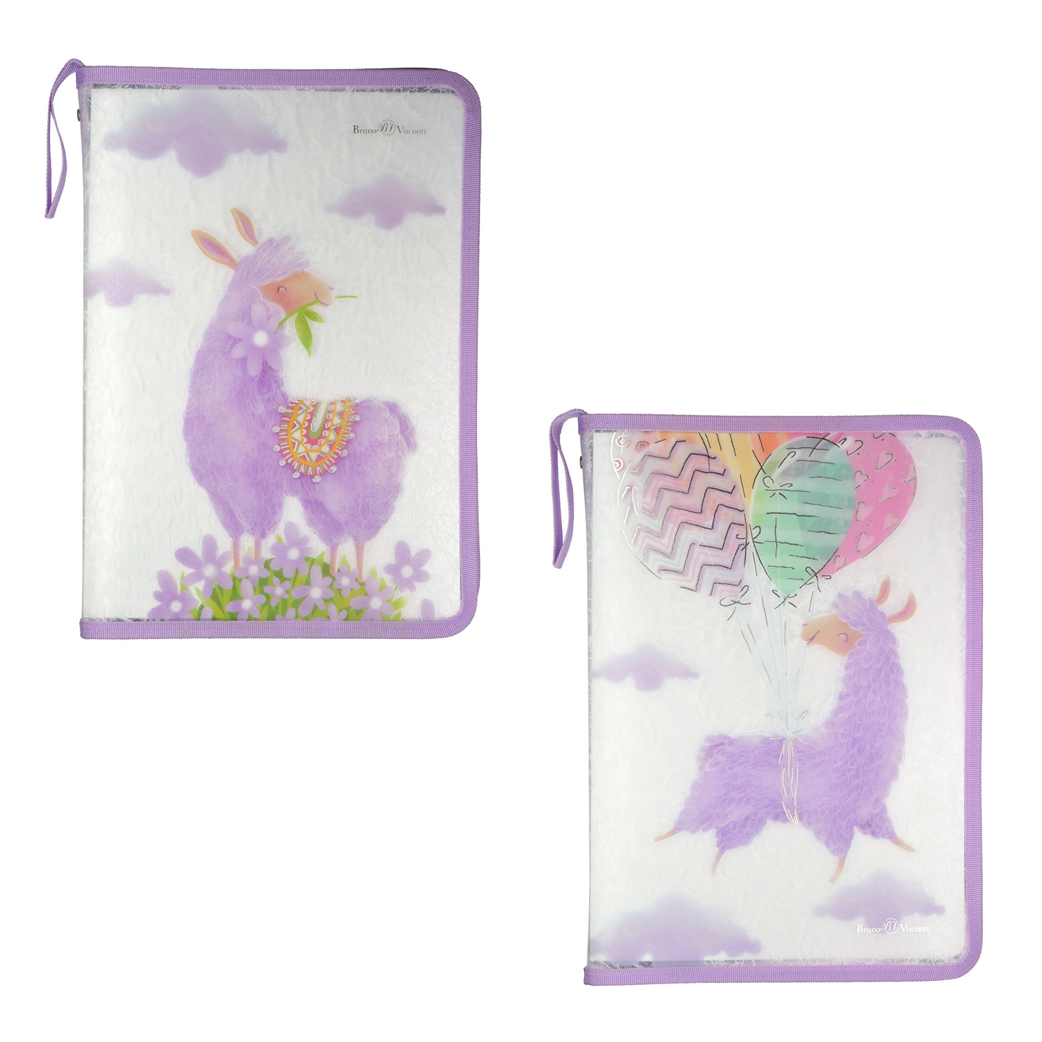 ПАПКА НА МОЛНИИ С ОКАНТОВКОЙ "ЛАВАНДОВЫЕ ЛАМЫ", А4, 2 ВИДА