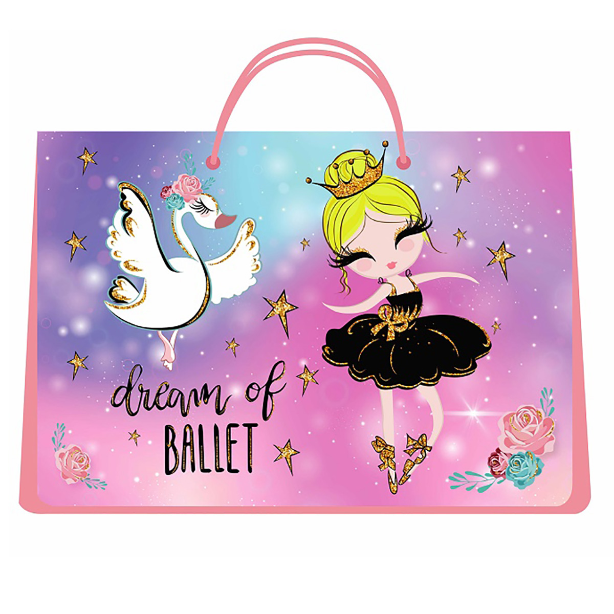90751 Папка с ручками-шнурок "Балерина", пластик, формат А4, боковина 75мм