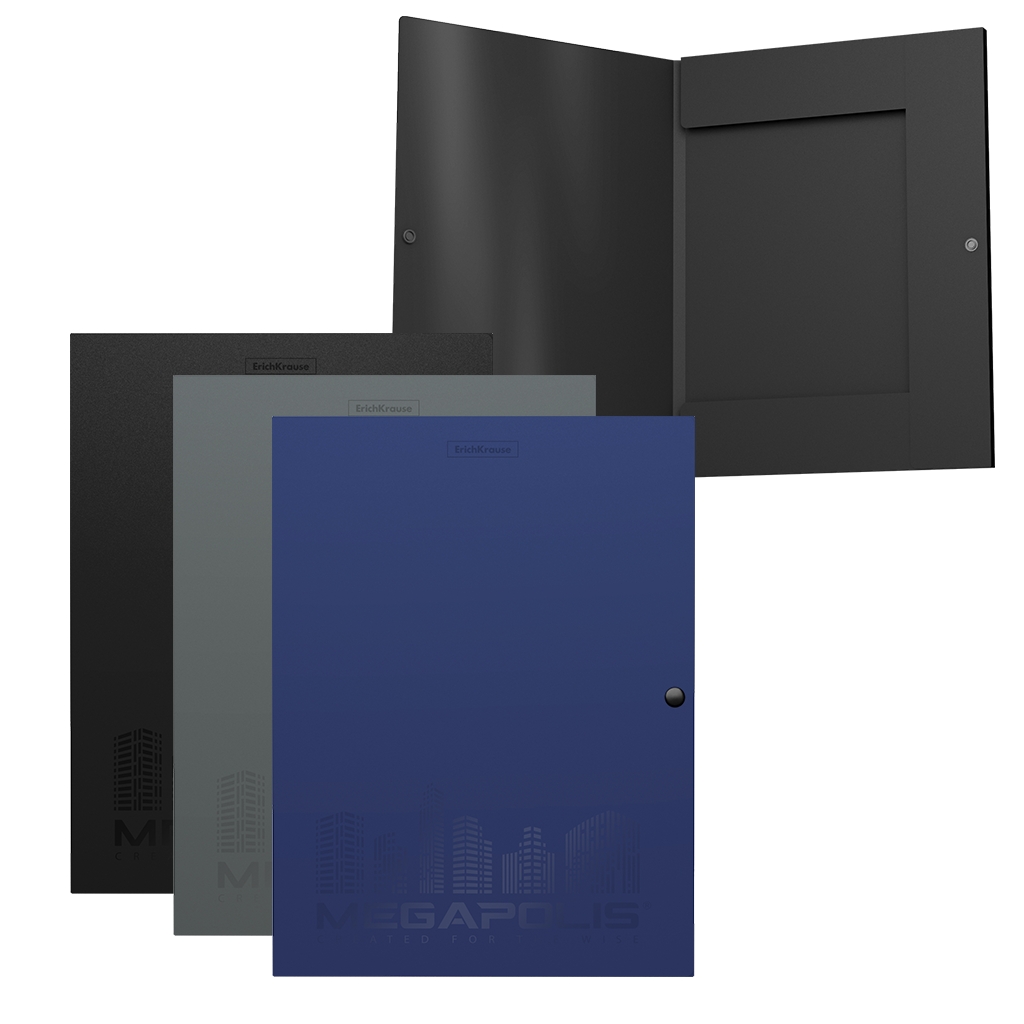 Папка на кнопке пластиковая Erich Krause MEGAPOLIS, с 3 клапанами, 8мм, A4, ассорти (в пакете по 4 шт.)