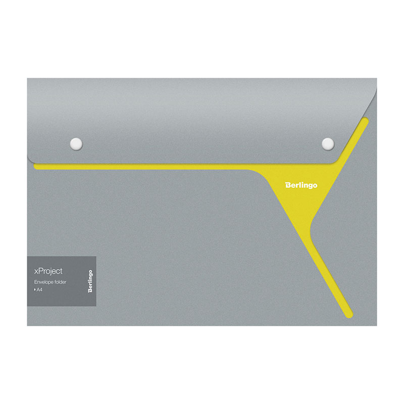 Папка-конверт на 2 кнопках Berlingo "xProject", серая/желтая, 300мкм.