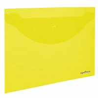 Папка-конверт с кнопкой BRAUBERG, А4, до 100 листов, прозрачная, желтая, 0,15 мм, 228670