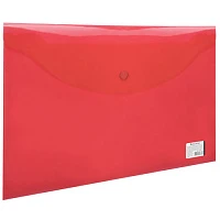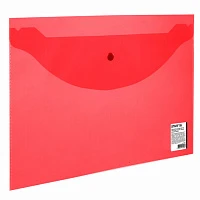 Папка-конверт с кнопкой BRAUBERG, А4, до 100 листов, прозрачная, красная, 0,15 мм, 221636