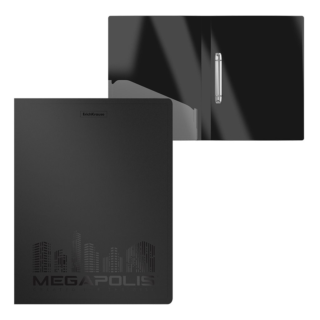 Папка на 2 кольцах пластиковая Erich Krause MEGAPOLIS, 24 мм, А4, черный (в пакете по 4 шт.)