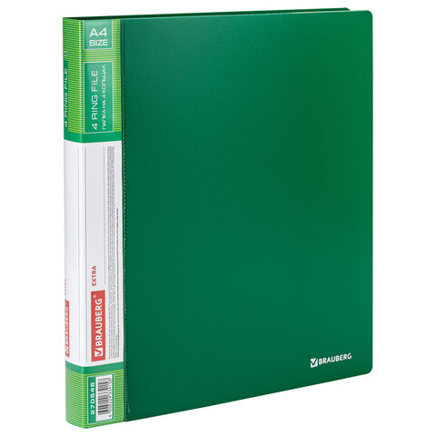 Папка на 4 кольцах, ширина 25 мм, BRAUBERG EXTRA, до 170 листов, ЗЕЛЕНАЯ, 0,7 мм, 270546
