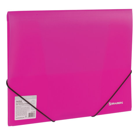 Папка на резинках BRAUBERG "Neon", неоновая, розовая, до 300 листов, 0,5 мм, 227462