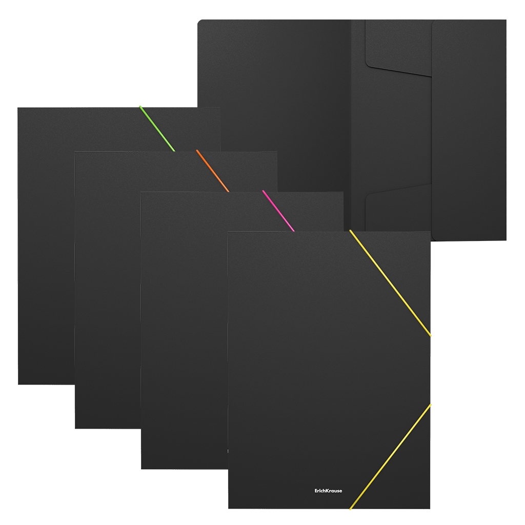 Папка на резинках пластиковая Erich Krause Matt Accent, A4, ассорти (в пакете по 4 шт.)