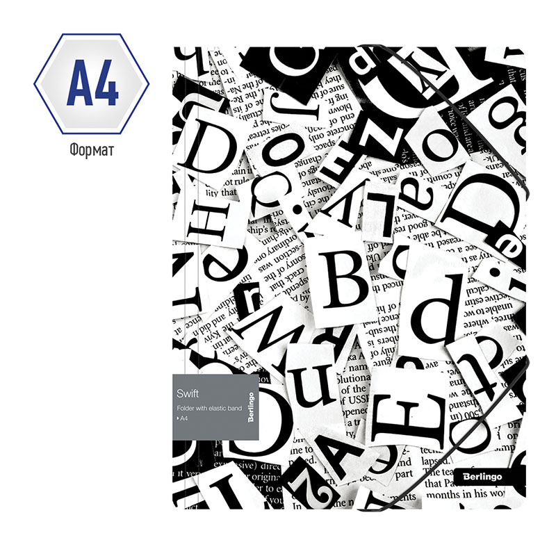 Папка пластиковая на резинках Berlingo "Swift" формата А4 с рисунком. Белый цвет внутренней поверхности. Надежные застежки-резинки. Быстрый доступ к содержимому. Изготовлена из высококачественного полипропилена с матовой текстурой поверхности "песок", на которой не видно отпечатков пальцев и мелких царапин. Предназначена для хранения документов. Толщина обложки 600мкм. Папка вмещает до 300 листов. Упакована в индивидуальный прозрачный пакет по форме.