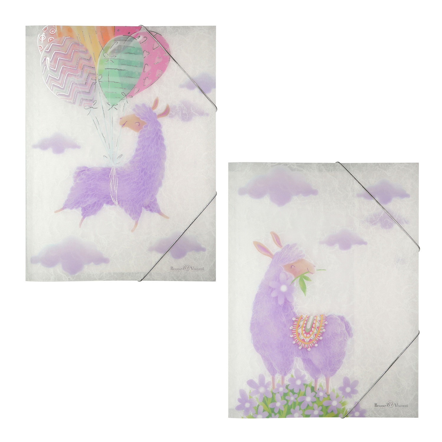 ПАПКА ФАЙЛ НА РЕЗИНКЕ "ЛАВАНДОВЫЕ ЛАМЫ", А4, 2 ВИДА