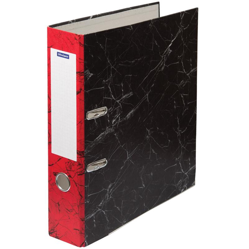 Папка-регистратор OfficeSpace 70мм, мрамор, черная, красный корешок, нижний метал. кант. 274413