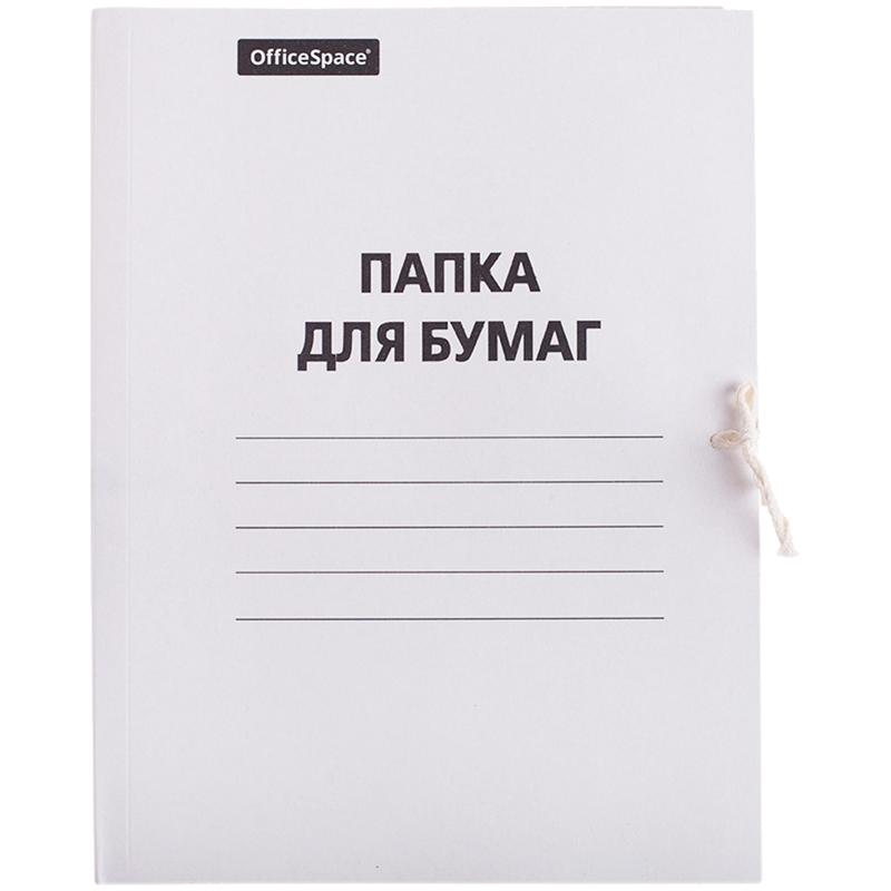 Папка для бумаг с завязками OfficeSpace, картон мелованный, 380г/м2, белый, до 200л. 257303
