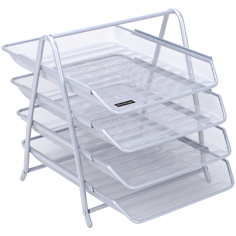 Лоток для бумаг горизонтальный Berlingo "Steel&Style", 4 секции, металл, серебристый