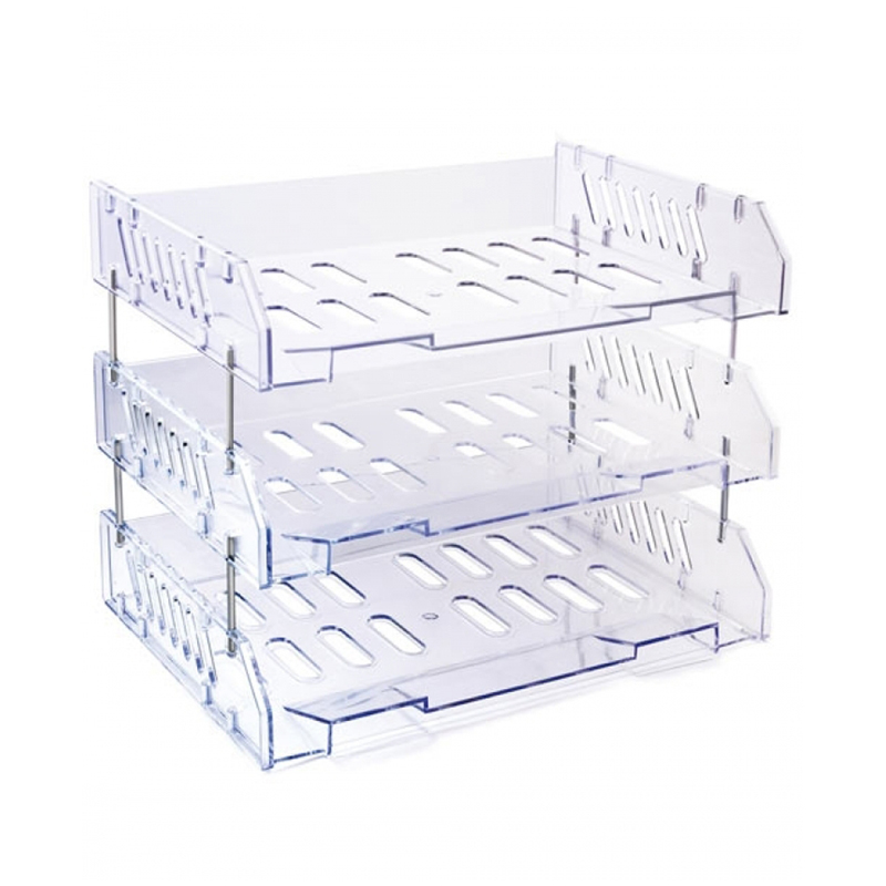 Набор из 3-х горизонтальных лотков для хранения документации формата А4. Функциональная конструкция позволяет вмещать большое количество документов. Широкая загрузка во фронтальной части лотка облегчает изъятие документов. Лотки надёжно стыкуются друг с другом металлическими стержнями 6см. Прочный, устойчивый, сетчатый корпус. Удобная транспортировка и хранение.