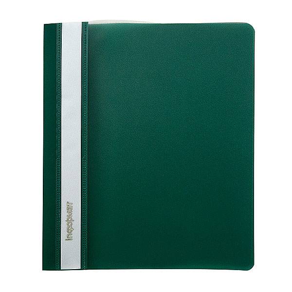 Папка-скоросшиватель формата А4 из цветного пластика толщиной 0,18 мм (180 мкм). Имеет прозрачный титульный лист толщиной 0,12 мм (120 мкм) и усиленный корешок с прозрачным карманом для маркировки. Корешок украшен логотипом «inФОРМАТ» серебристого цвета.