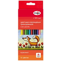 Карандаши цветные Гамма "Мультики", 12цв., трехгранные, заточен., картон. упак., европодвес