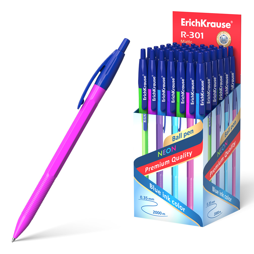 Ручка шариковая автоматическая Erich Krause® R-301 Neon Matic 0.7, цвет чернил синий (в коробке по 50 штук)