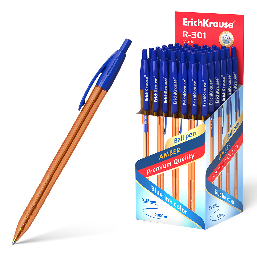 Ручка шариковая автоматическая Erich Krause® R-301 Amber Matic 0.7, цвет чернил синий (в коробке по 50 штук)