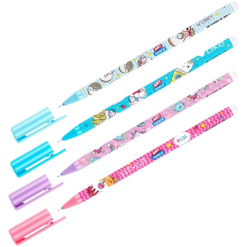 Гелевая ручка ArtSpace Кот-сластена – это яркий дизайн с уникальными стираемыми чернилами внутри. Милый корпус с дизайнами представлен в 4 цветах. Гелевые чернила не только ярко пишут на бумаге, но и при воздействии температуры становятся невидимыми – достаточно потереть написанное ластиком на кончике ручки. Обесцвеченные чернила проявляются при низкой температуре. Есть колпачок с клипом – можно закрепить ручку на одежде или тетради. Диаметр игольчатого пишущего узла 0,38 мм, благодаря чему получается тонкая и аккуратная линия. Длина сменного стержня 127 мм. • Цвет чернил: синий, • Толщина линии письма: 0,3 мм, • Длина письма: 160 метров, • Длина ручки 150 мм, • Цвет корпуса: ассорти.
