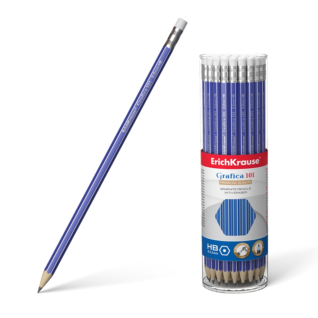Чернографитный шестигранный карандаш с ластиком Erich Krause® Grafica 101 HB (в тубусе по 42 шт.)