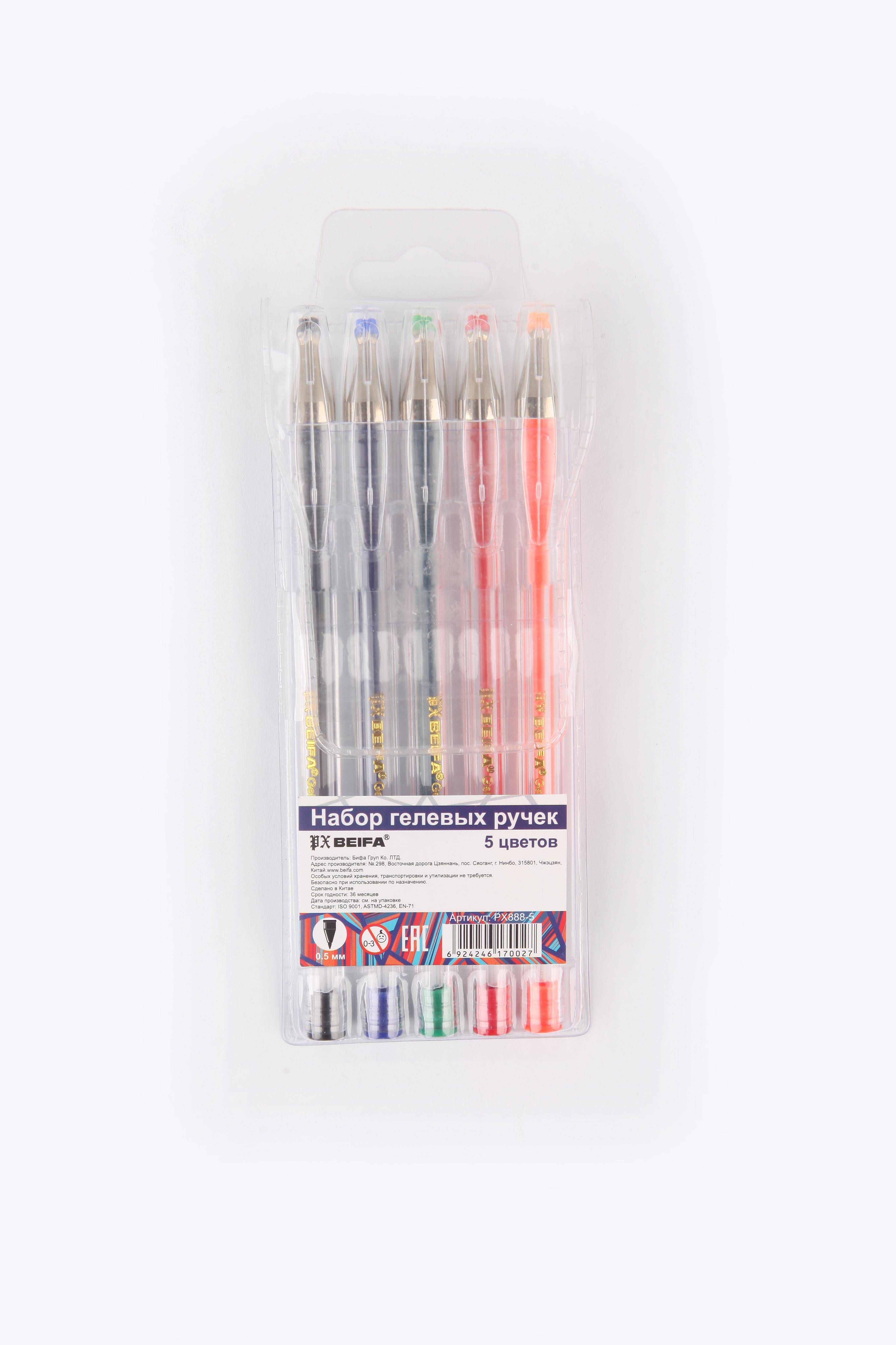 Набор гел.ручек BEIFA 0,7 мм ассорти 5 цв.: BE-PX-888-5 штр.: 6924246170027