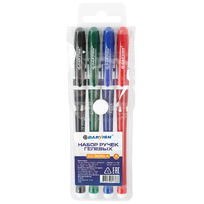 Набор ручек гелевых 4цв. "Darvish" корпус цветной упаковка на кнопке