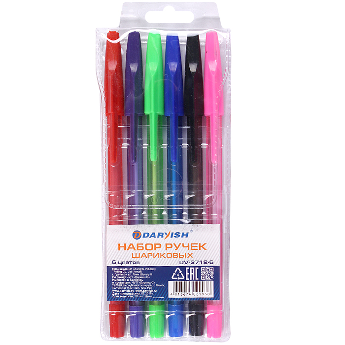 Набор ручек шариковых 6цв. "Darvish" корпус цветной полупрозрачный
