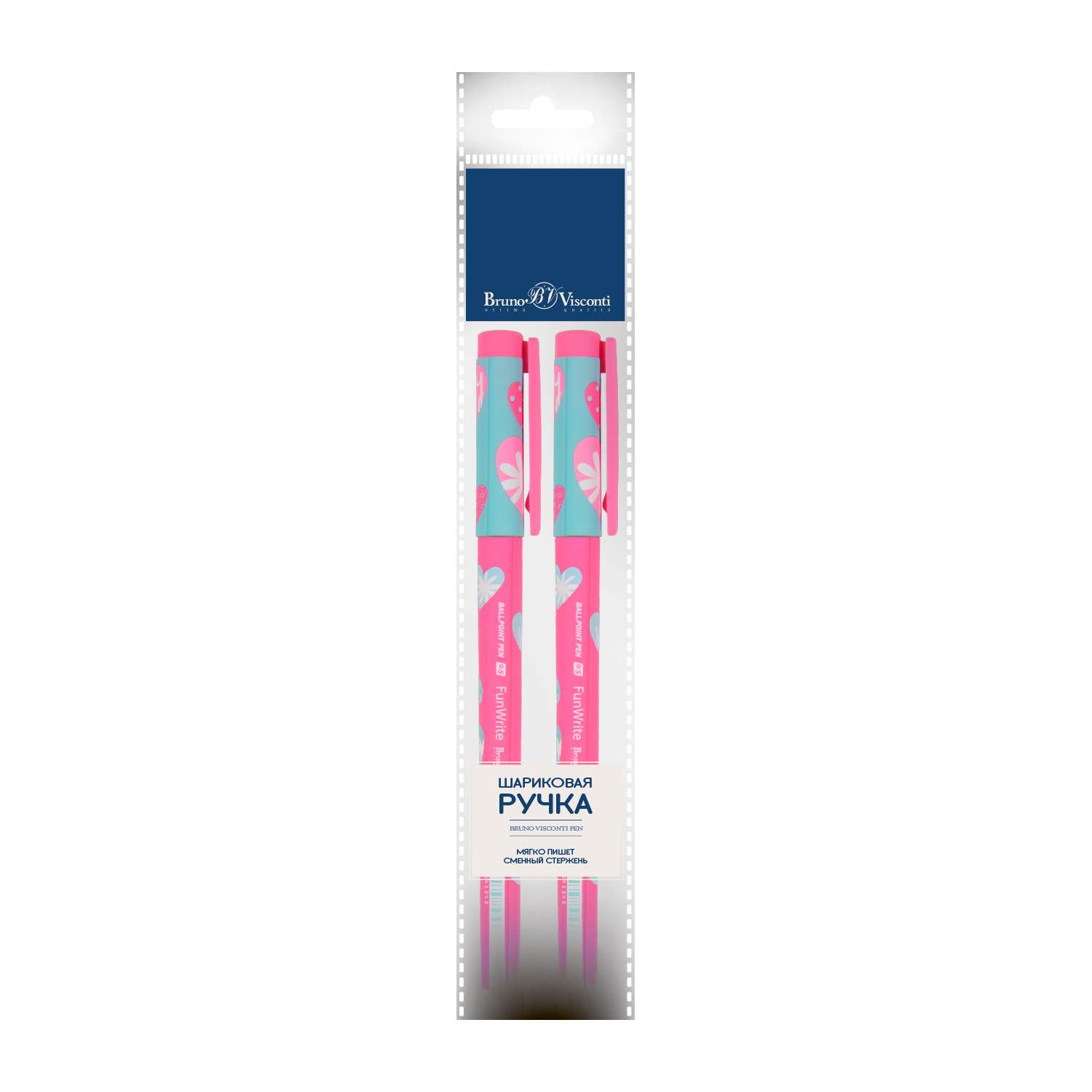 НАБОР ИЗ 2-Х РУЧЕК "FunWrite. Сердечки. Эмоции. Малина" ШАРИКОВАЯ, 0.5 ММ, СИНЯЯ