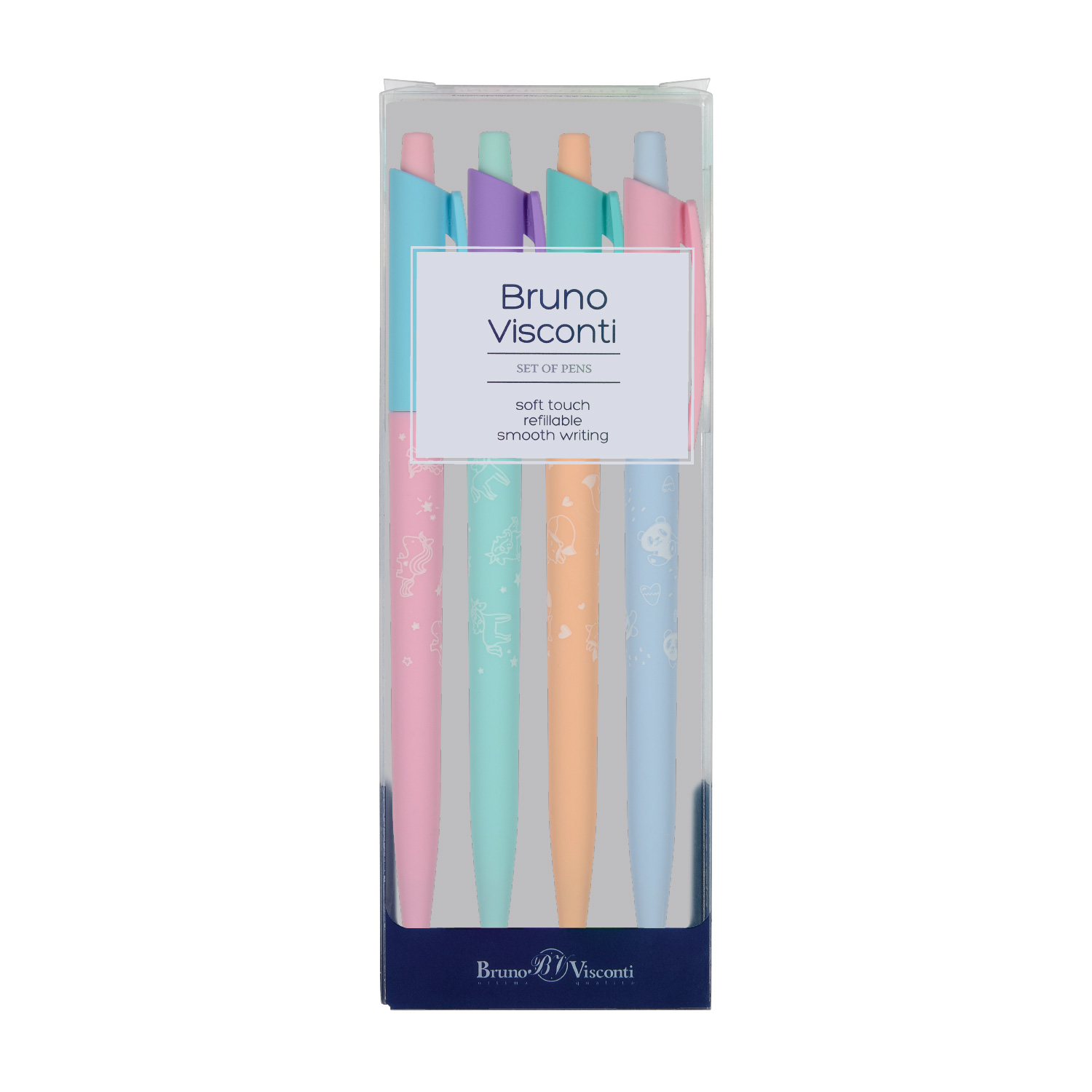НАБОР ИЗ 4-Х РУЧЕК "HappyClick. Зефирные животные" ШАРИКОВЫХ, 0.5 ММ, СИНЯЯ