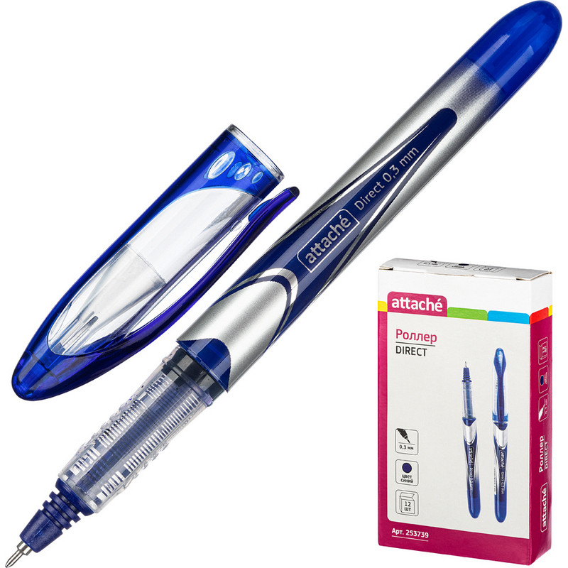 Одноразовая ручка-роллер в пластиковом корпусе с колпачком. Тонкий игольчатый наконечник с толщиной линии письма 0,3 мм. Чернила на водной основе синего цвета. Клип на колпачке позволяет крепить роллер к одежде. Прозрачная манжетка надежно защищает от протекания чернил. При изменении температурного режима возможно накапливание чернил под манжеткой роллера.