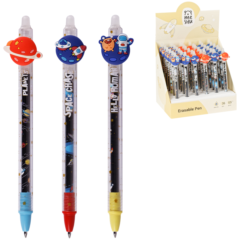 Ручка гелевая стираемая автоматическая MESHU "Space Chase" синяя, 0,5мм, корпус ассорти