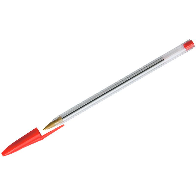 Шариковая ручка с красными чернилами. Толщина линии - 0,5 мм. Корпус ручки - прозрачный пластик.