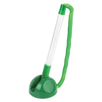 Ручка шариковая настольная BRAUBERG "Стенд-Пен", СИНЯЯ, пружинка, корпус зеленый, линия письма 0,5 мм, 141350