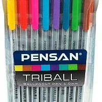 Ручки шариковые масляные PENSAN "Triball Colored", НАБОР 8 шт., АССОРТИ, узел 1 мм, линия письма 0,5 мм, 1003/PVC8