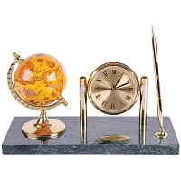 Подставка под ручку с глобусом и часами, зеленый мрамор : MBm_00002 штр.: 4606782162552