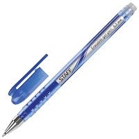 Ручка стираемая гелевая STAFF ERASE, СИНЯЯ, прорезиненный корпус, узел 0,5 мм, линия письма 0,35 мм, 143656