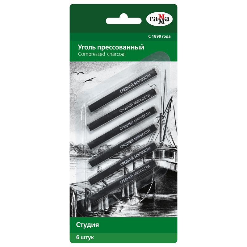 Уголь прессованный Гамма "Студия", средней мягкости, квадратного сечения, 6шт., блистер