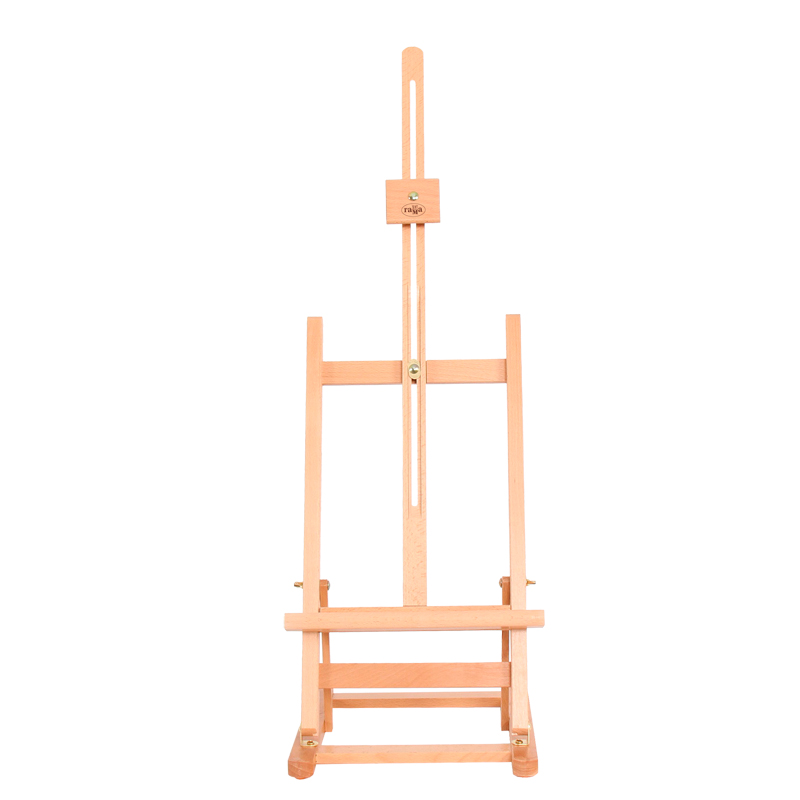 Мольберт для работы с малыми и средними форматами. Мачту можно наклонить на себя для проработки мелких деталей или сушки работ. Верхний фиксатор регулируется по высоте и надежно удерживает холст. Пластиковые опоры на основании препятствуют скольжению. Мольберт удобно хранить в сложенном виде. Материал — лакированный бук. Максимальный размер холста?– 62 см.