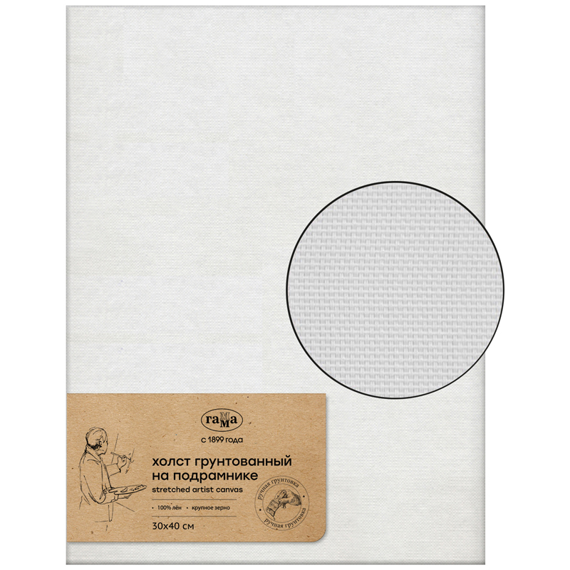 Холст на подрамнике Гамма, 30*40см, 100% лен, крупное зерно, масляный грунт, ручная грунтовка