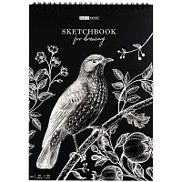 Скетчбук 20л., А4 ArtSpace "Black line. Bird", на гребне, 120г/м2, черный блок