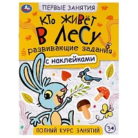 Кто живёт в лесу. Первые знания с наклейками. 215х285 мм. Скрепка. 16 стр. Умка